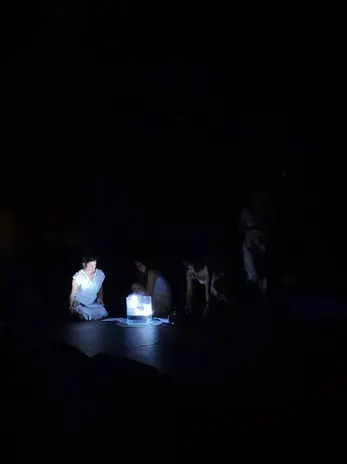 Sarah Boutier, Meghann Cassidy, Jaine Chemmacherry, Charlotte Mariel, Laura Pouppeville, Cendrine Robelin, Faire parler l’eau, semer le trouble, 2024, performance scénique avec acrobaties aériennes et projections audiovisuelles, restitution au public au Centre Wallonie-Bruxelles, Paris, 31 août et 1er septembre 2024
