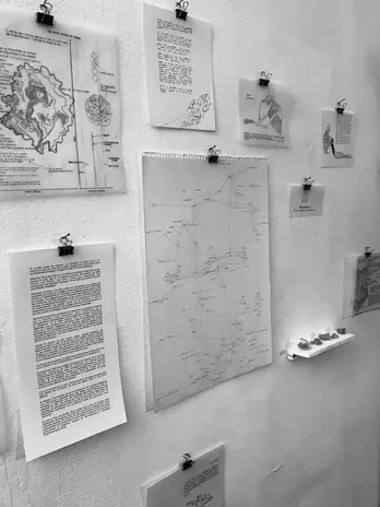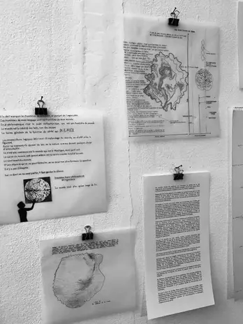 Faire parler l’eau, semer le trouble, Installation dans la galerie du Centre Wallonie-Bruxelles de Sarah Boutier, Meghann Cassidy, Jaine Chemmacherry, Charlotte Mariel, Laura Pouppeville et Cendrine Robelin :