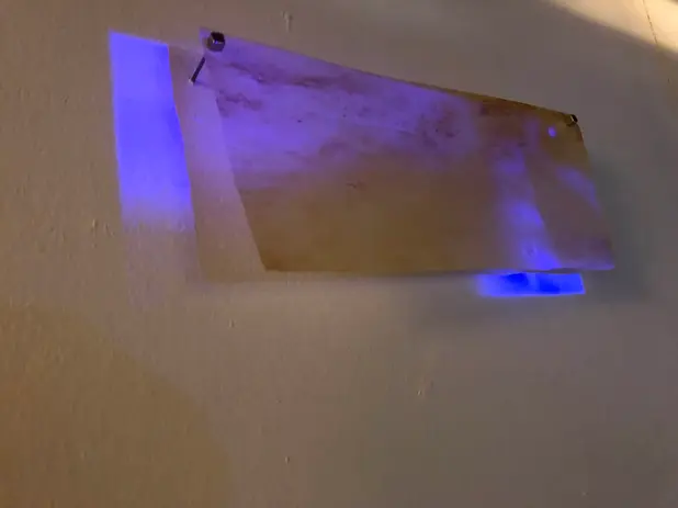 Projet RENDRE AU CIEL ET À LA TERRE CE QUI LEUR APPARTIENNENT. Série d’empreintes en plâtres et de Cyanotypes sur plâtres, créée dans la forêt puis exposée et laissée dans la forêt de Sénart, 2025. © Charlotte Mariel