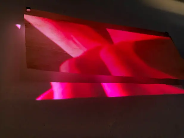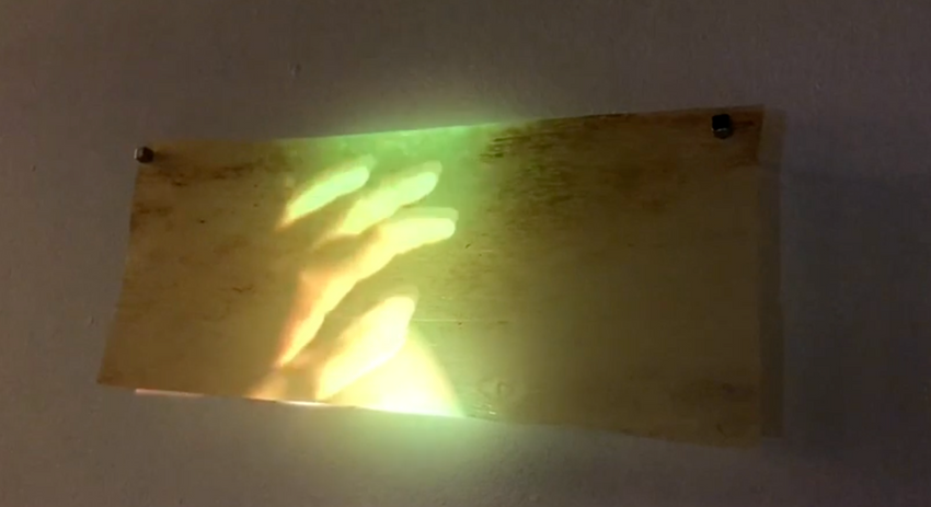 Projet Matière du texte, plaisir des mots, pouvoir de la parole, 2024-en cours. Projections de films sur feuilles de tronc d'arbres. © Charlotte Mariel